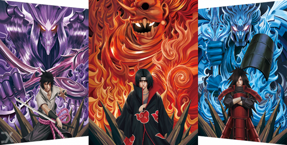 بوستر لمحبين انمي ناروتو مطبوع بتقنية Flip 3D مما يجعل البوستر يتغير بين 3 صور مادارا ايتاشي ساسكي حسب زاوية الرؤية